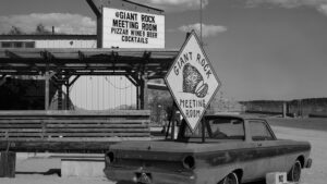Giant Rock Meeting Room rests along the highway like a waypoint. Inside, the mood shifts with the night. Some evenings lean quiet. Others gather into live music, open mic sets, and conversations that stretch longer than intended.